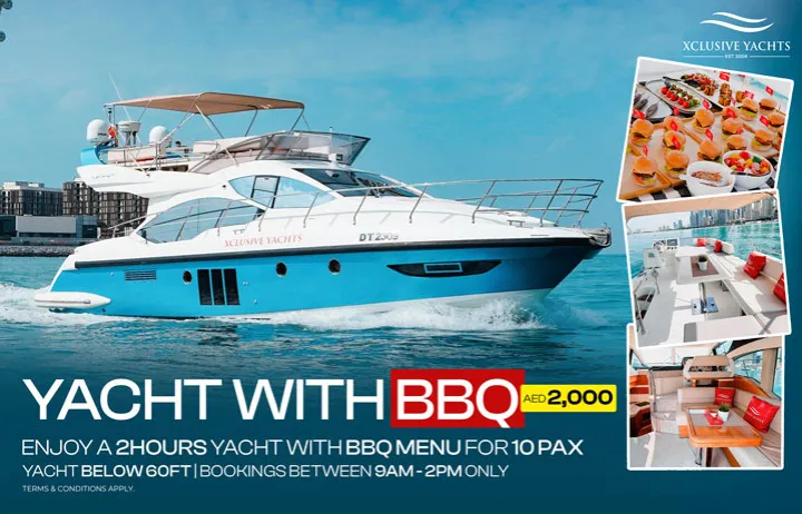 - Enjoy a 2-hour yacht trip with a BBQ menu for 10 people for only AED 2,000