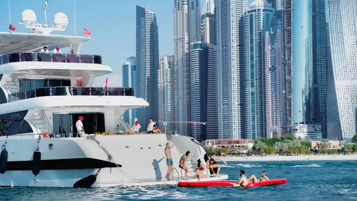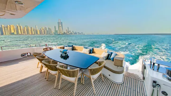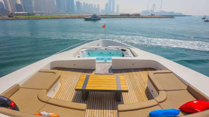 Anchor at the iconic Palm Jumeirah for breathtaking photo opportunities, and enjoy private access to Dubai Harbour and Marina West Beach with a 10-meter tender rib.