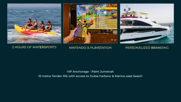 Step aboard a magnificent 141 feet tri-deck Super Yacht and indulge in the finest luxury experience on Dubai’s waters. Whether it’s a milestone celebration, a glamorous event, or simply a day of indulgence, this package promises an unforgettable journey filled with elegance, adventure, and world-class service.