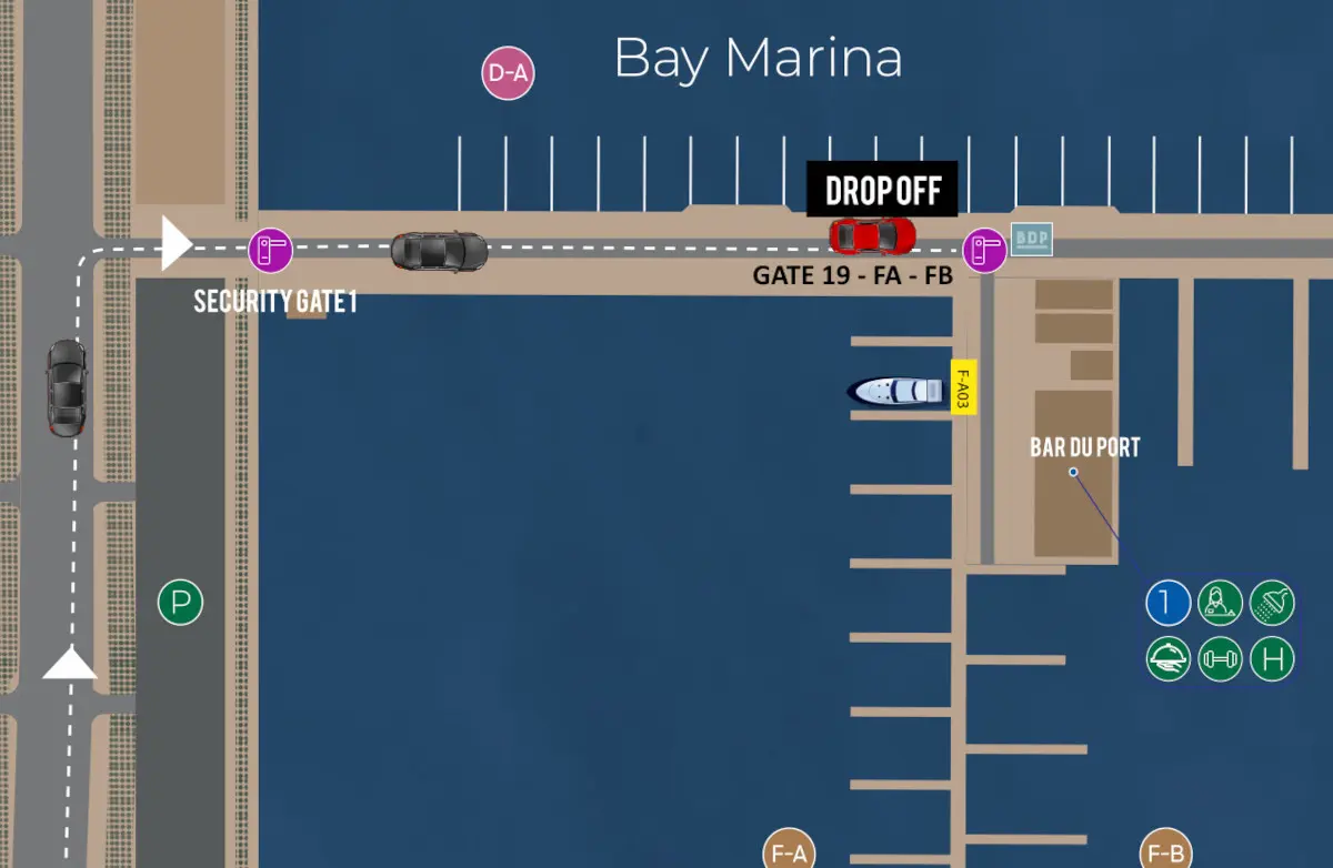 Meet & Greet point is at Xclusive Yachts – Dubai Harbour