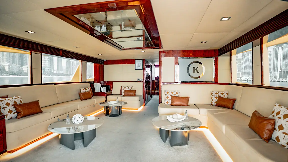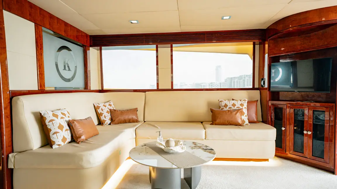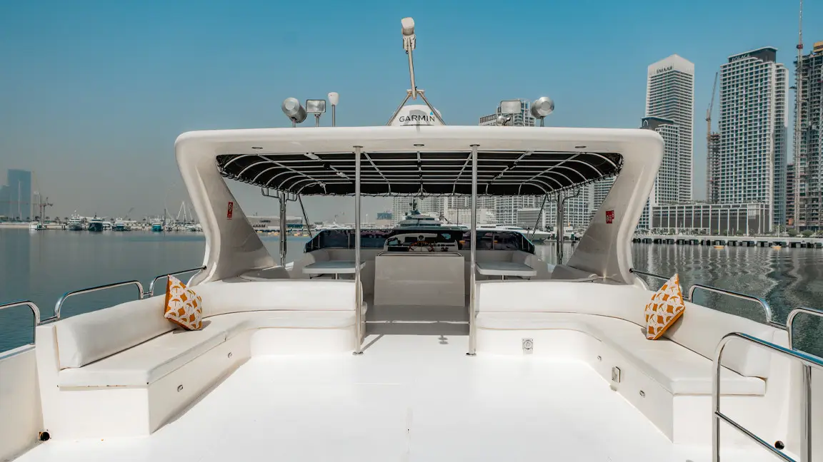 She has an extra-large flybridge, which can be used as a reception area for you and your guests to take in all the great views and landmarks throughout the duration of your cruise.