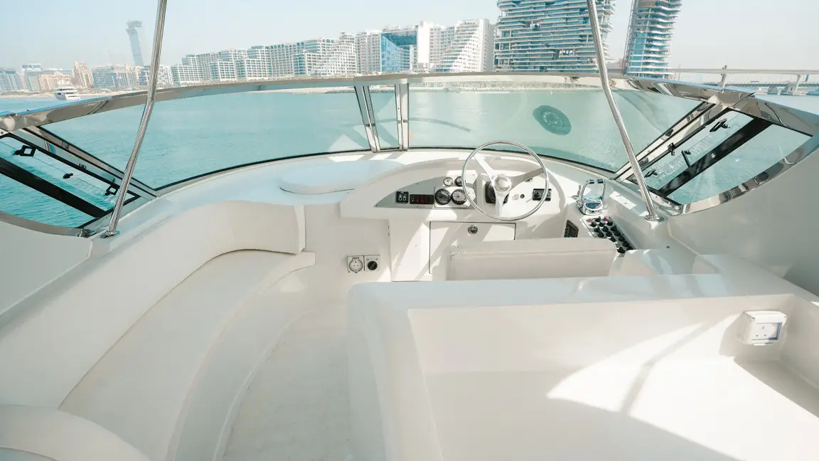 Having an unbelievably spacious fly bridge with abundant sun & shade and seating & lounge area, it is perfect for family and friends. She is a class-leading yacht that continues to set the standards of a luxurious yacht. With its perfect balance of performance, efficiency and luxurious accommodation, she is best share with party of 25pax.