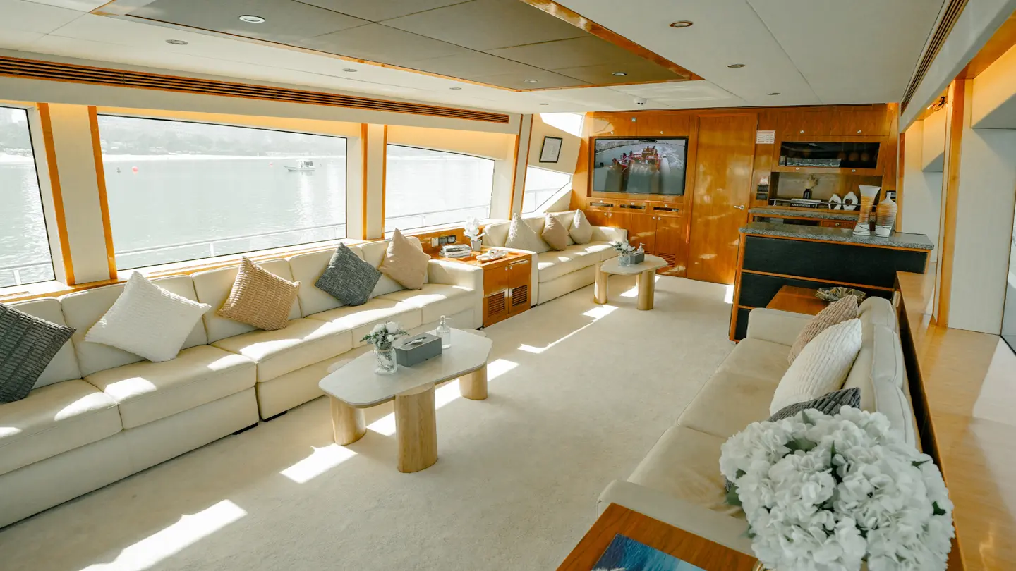 Book the brand new 92ft X42 yacht in Dubai, offering unique design and spacious luxury for up to 35 guests. Perfect for large groups seeking an exclusive sea experience with modern amenities and expert crew service.
