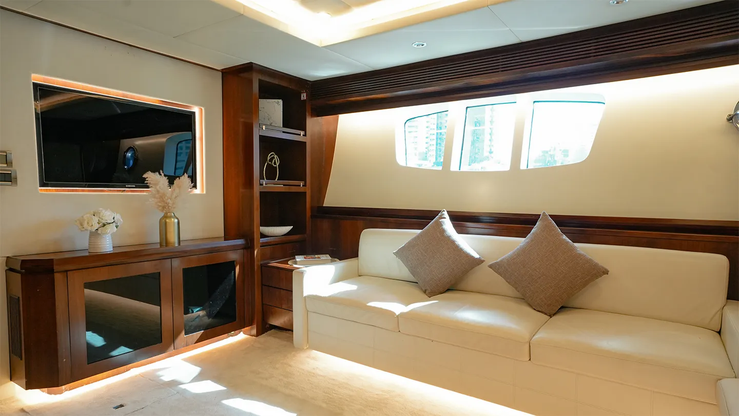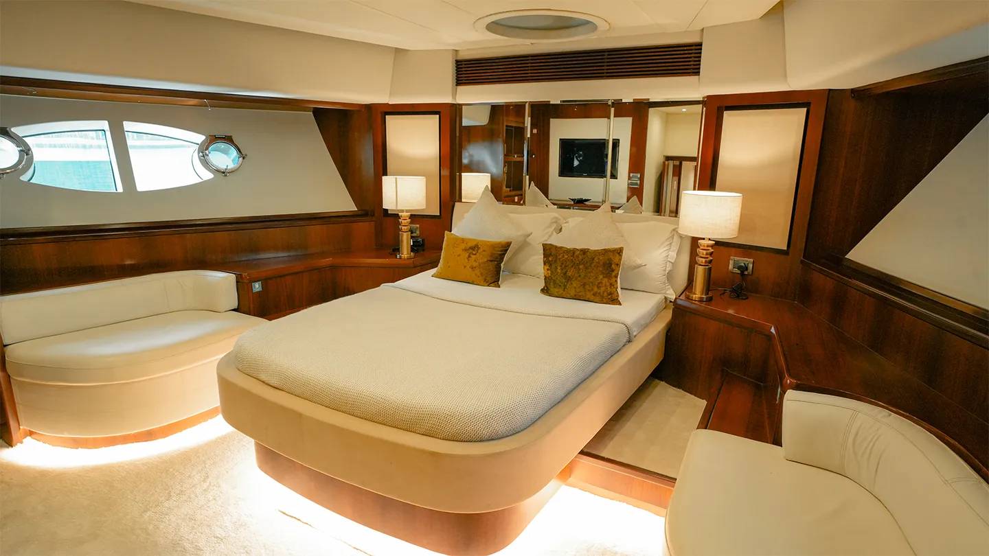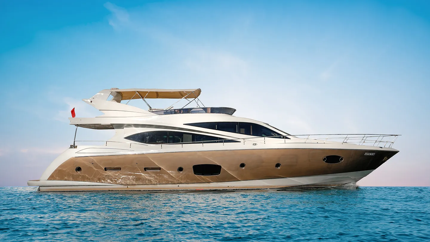 Xclusive 43 is a luxury yacht. She has a wide structure and a open plan top deck. perfect for large groups. Unique in design.