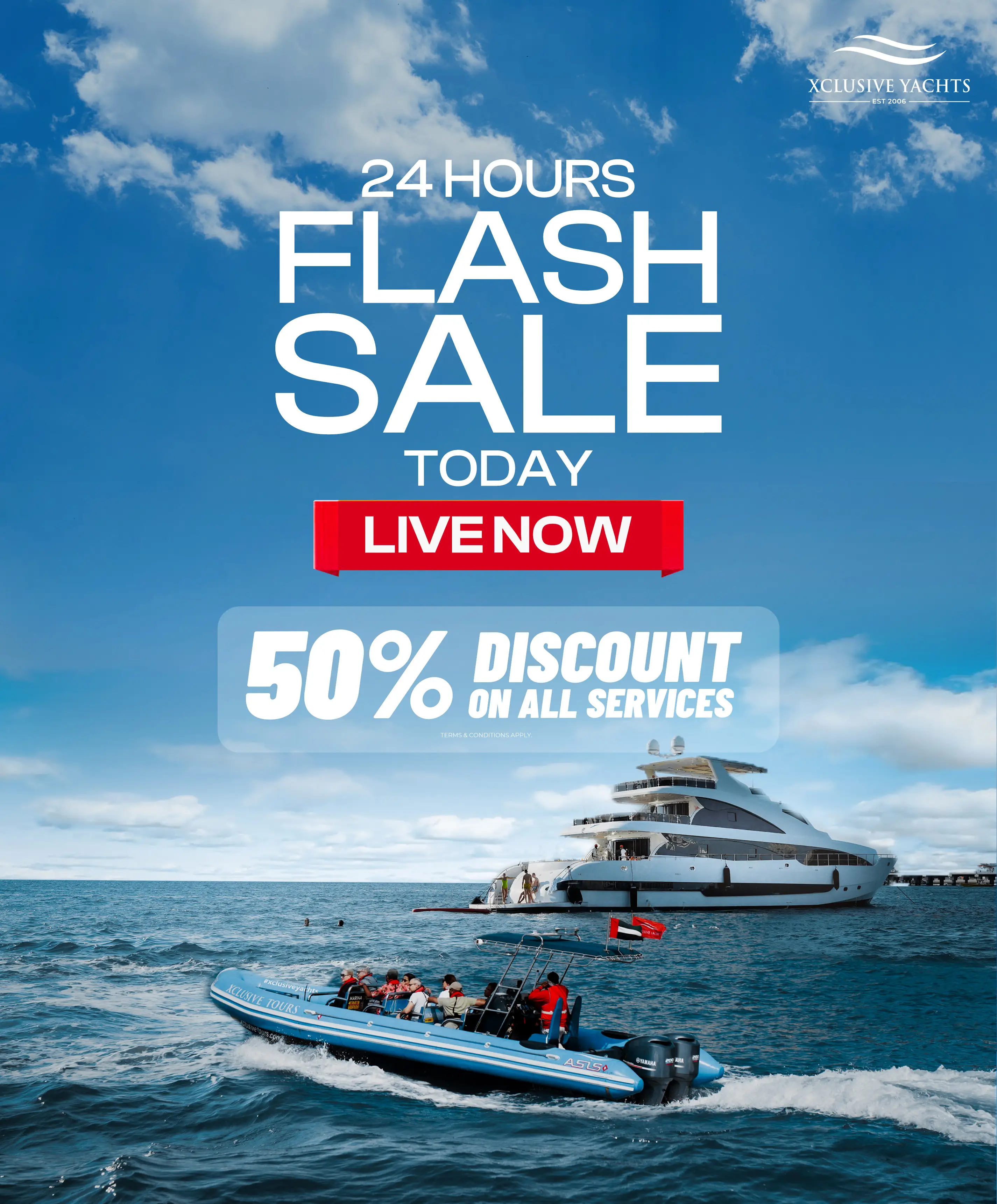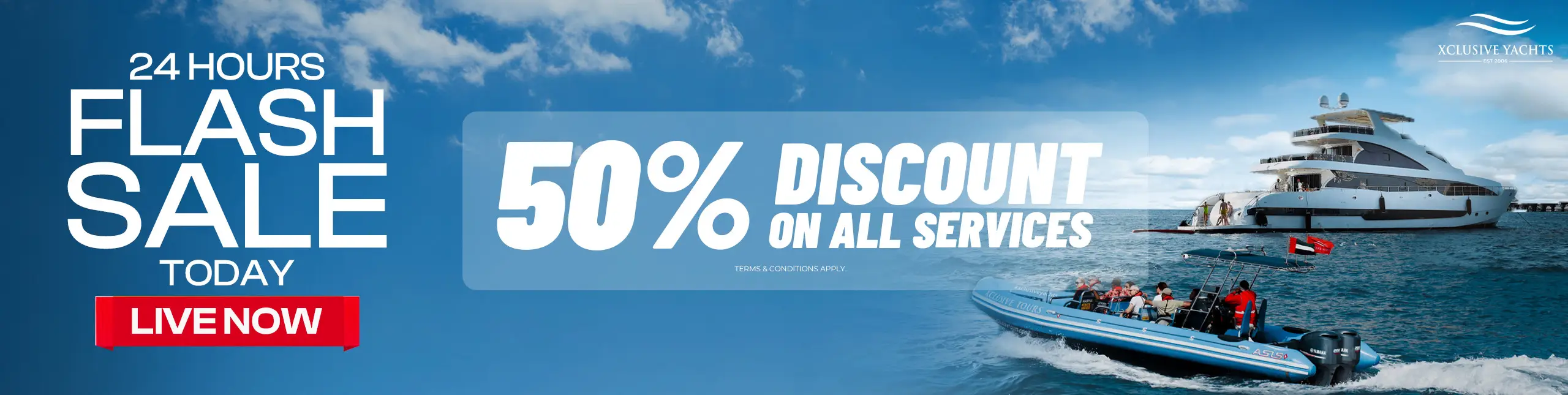 Xclusive began Chartering Yachts in 2006, with popularity the company has grown its fleet and now operates 100 vessels and employs over 500 staff Rated Dubai’s #1 Yacht Charter Operator.