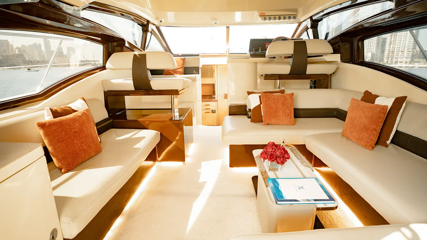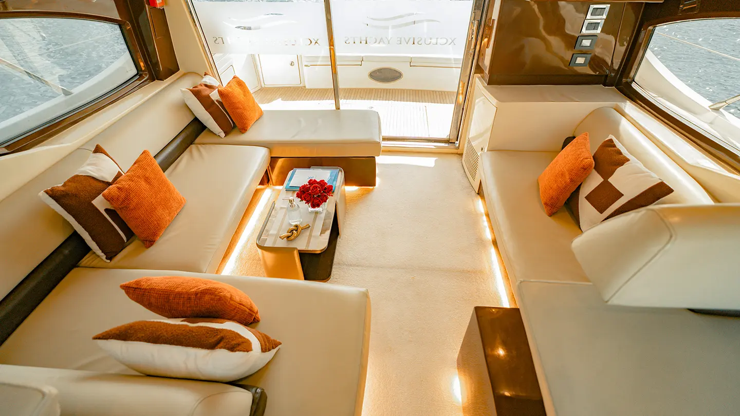 Just below the deck are three cabins two bed each and two separate bathrooms. She is an emblem of luxury and class as well as the most suitable choice for family recreation and hangouts.